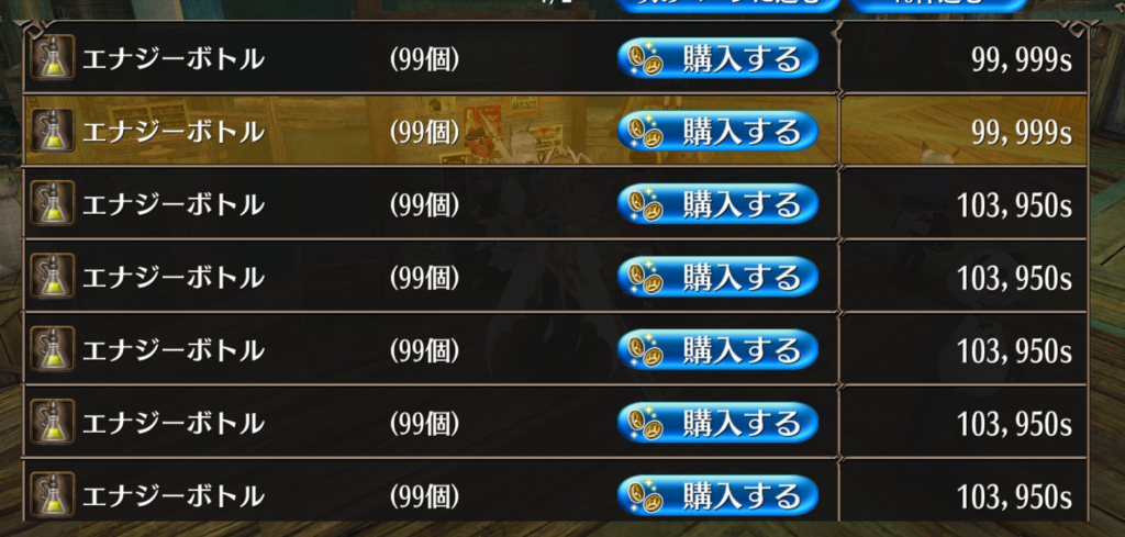 しかも値段が下がることも今のところはありません。このチャンスに金策に悩んでる人はエナジーボトルを集めてみてください!